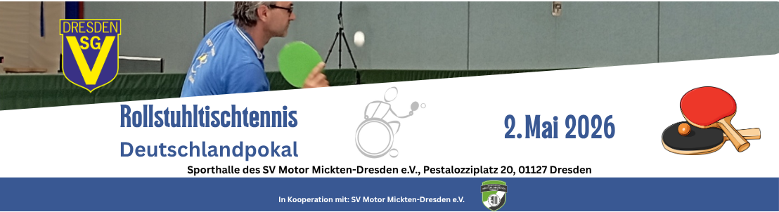 Die Sektion Rollstuhltischtennis der SGV Dresden e.V. freut sich, zum zweiten Mal einen Deutschlandpokal im Rollstuhltischtennis nach Dresden holen zu können!